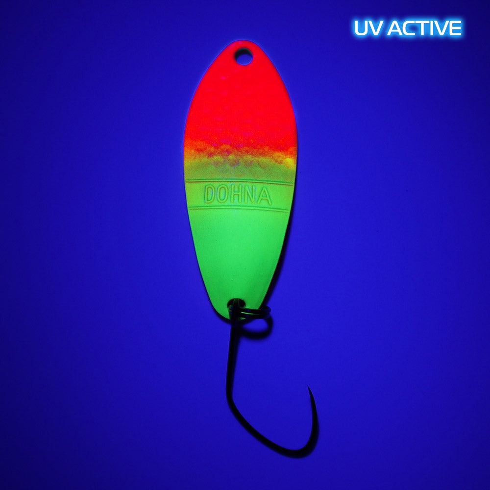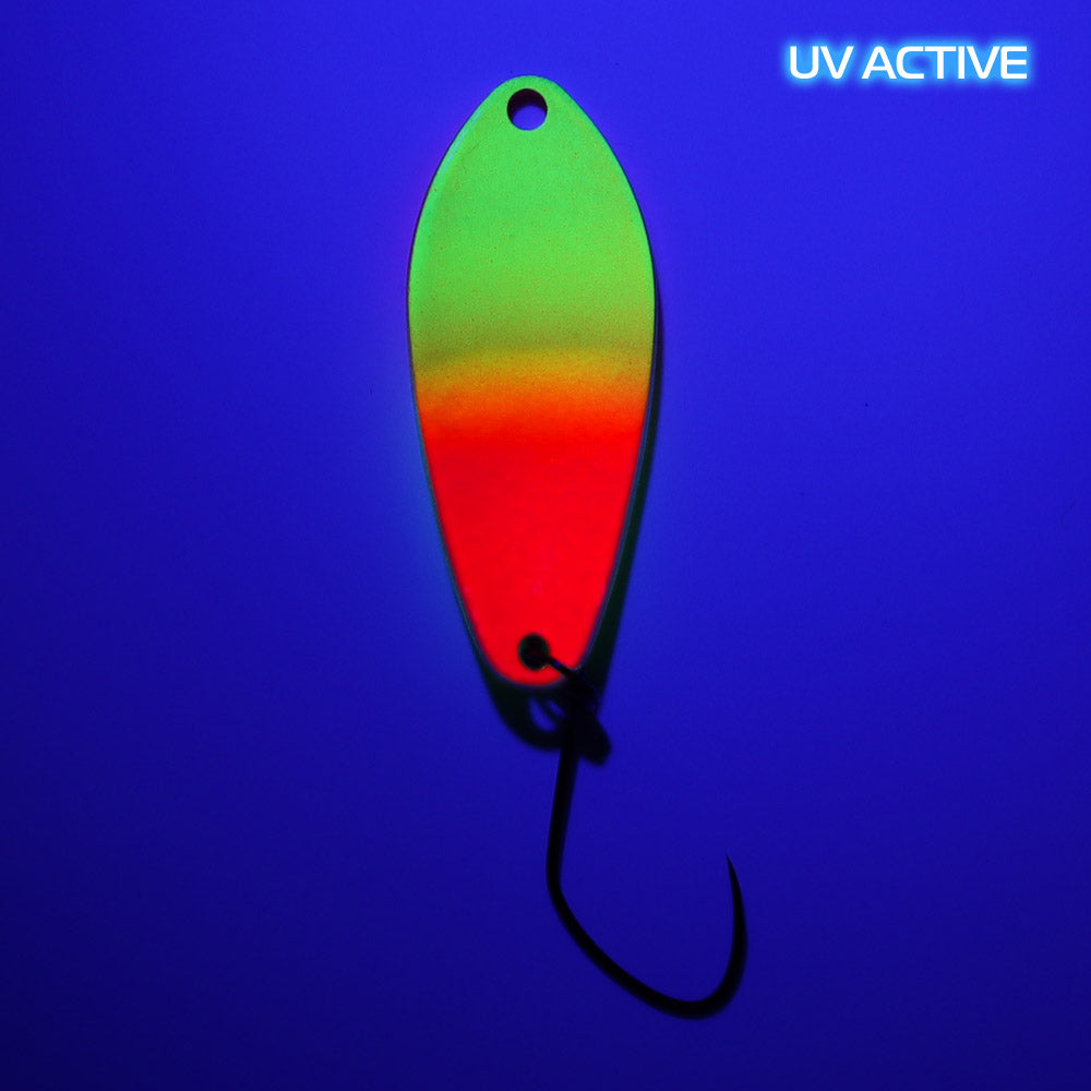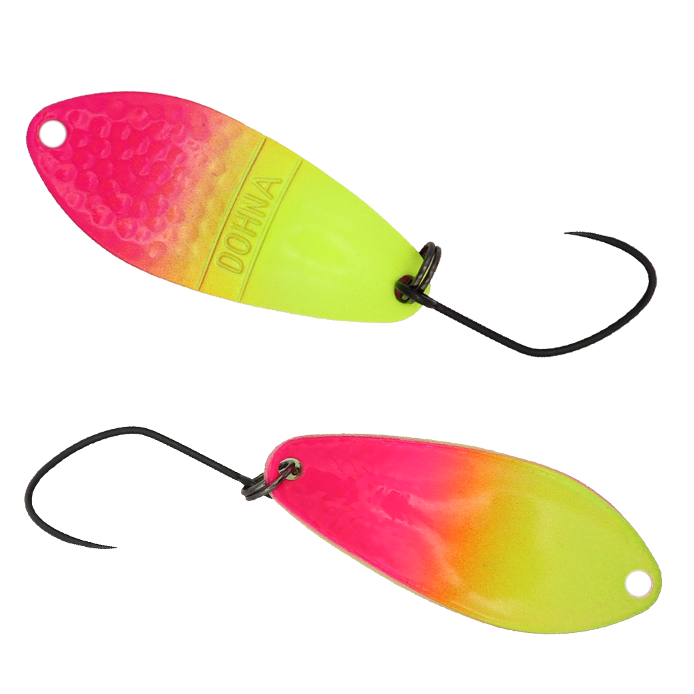 Ob Fließ- oder Stillgewässer, durch seine verschiedenen Gewichtsklassen von 0,8g – 3,0g und die hohe Farbauswahl ist er jeder Situation gewachsen. Ein weiterer Vorteil ist seine asymmetrische Form. Das Spoonblatt des Antem Dohna ist vorne breiter als hinten. Durch diese Form wird der Wasserwiderstand erhöht, was den Köder lebhafter spielen lässt. Die spezielle Spoonoberfläche erzeugt Blinkreize, die den Fisch zum Anbiss verleiten.