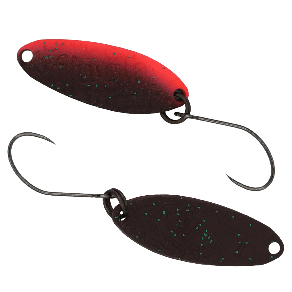 Fuga von GOD HANDS ist ein Spoon, der extra fürs Forellenangeln entwickelt wurde. Das Besondere an diesem Modell sind originelle Gravuren auf beiden Seiten, die bei der Köderführung zusätzliche starke Druckwellen erzeugen und somit passive Fische provozieren. Durch die längliche Form des Spoons werden gute aerodynamische Charakteristiken und daraus folgende bemerkenswerte Wurfweiten erreicht. Den Fuga gibt es bei uns im Shop in 2.2. g – und in vielen exklusiven EM-Farben, die durch ihre UV-Glow-Elemente geprägt sind und dadurch für große Erfolge sorgen.