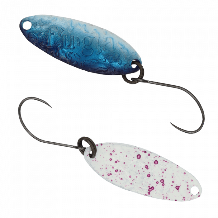 Fuga von GOD HANDS ist ein Spoon, der extra fürs Forellenangeln entwickelt wurde. Das Besondere an diesem Modell sind originelle Gravuren auf beiden Seiten, die bei der Köderführung zusätzliche starke Druckwellen erzeugen und somit passive Fische provozieren. Durch die längliche Form des Spoons werden gute aerodynamische Charakteristiken und daraus folgende bemerkenswerte Wurfweiten erreicht. Den Fuga gibt es bei uns im Shop in 2.2. g – und in vielen exklusiven EM-Farben, die durch ihre UV-Glow-Elemente geprägt sind und dadurch für große Erfolge sorgen.