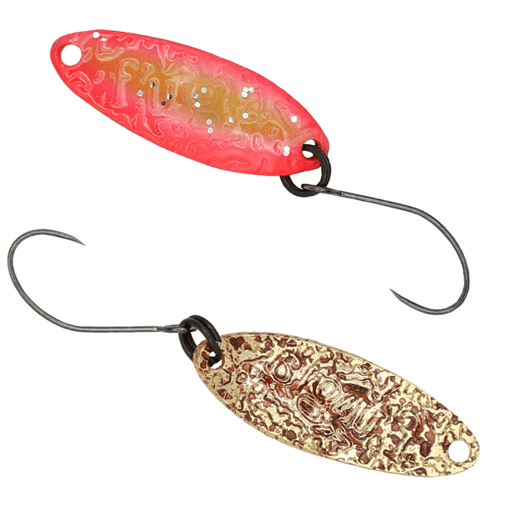 Fuga von GOD HANDS ist ein Spoon, der extra fürs Forellenangeln entwickelt wurde. Das Besondere an diesem Modell sind originelle Gravuren auf beiden Seiten, die bei der Köderführung zusätzliche starke Druckwellen erzeugen und somit passive Fische provozieren. Durch die längliche Form des Spoons werden gute aerodynamische Charakteristiken und daraus folgende bemerkenswerte Wurfweiten erreicht. Den Fuga gibt es bei uns im Shop in 2.2. g – und in vielen exklusiven EM-Farben, die durch ihre UV-Glow-Elemente geprägt sind und dadurch für große Erfolge sorgen.