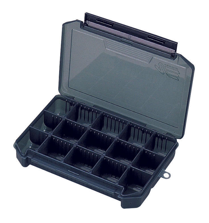 Die Meiho Versus VS 3010 ND ist eine stapelbare und frei einteilbare Köder- und Kleinteilebox, Einhandbediensystem.