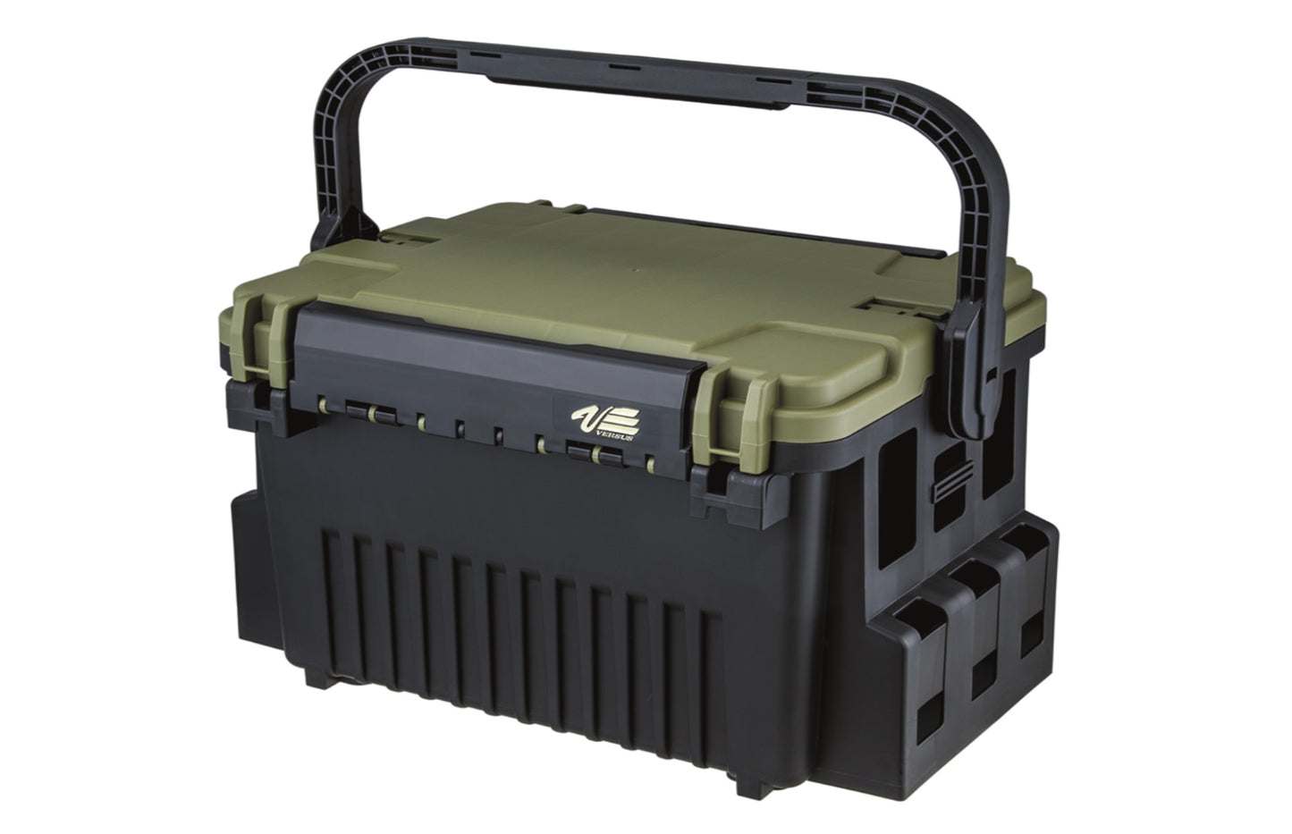 Der Deckel dieser MULTI FUNCTION BOX lassen sich als Tisch nutzen. Im aufgeklappten Zustand dient der Tragegriff als Fuß und stabilisiert den „Tisch“ zuverlässig. Ein äußerst praktisches Feature für alle Ansitzangler.