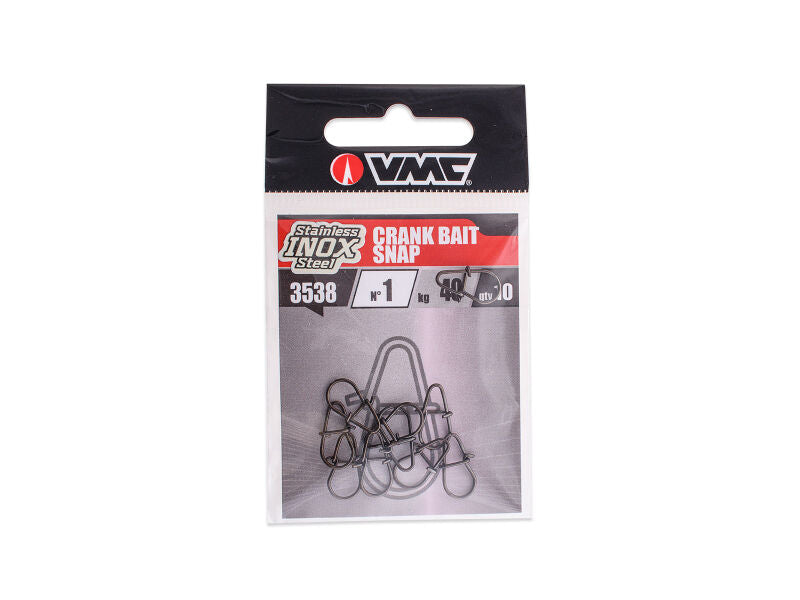 Die VMC Crank Bait Snaps (3538) sind speziell für das Angeln mit Hardbaits entwickelt worden. Durch ihre stabile Konstruktion und den weiten Bogen ermöglichen sie dem Köder ein besonders natürliches und freies Laufverhalten. Dadurch können Crankbaits und Twitchbaits ihr volles Spiel im Wasser entfalten und wirken noch attraktiver auf Raubfische.