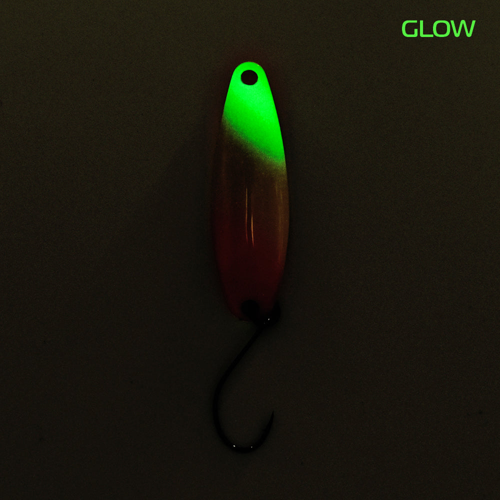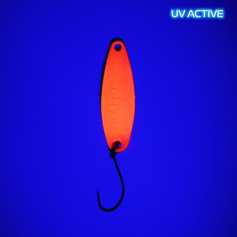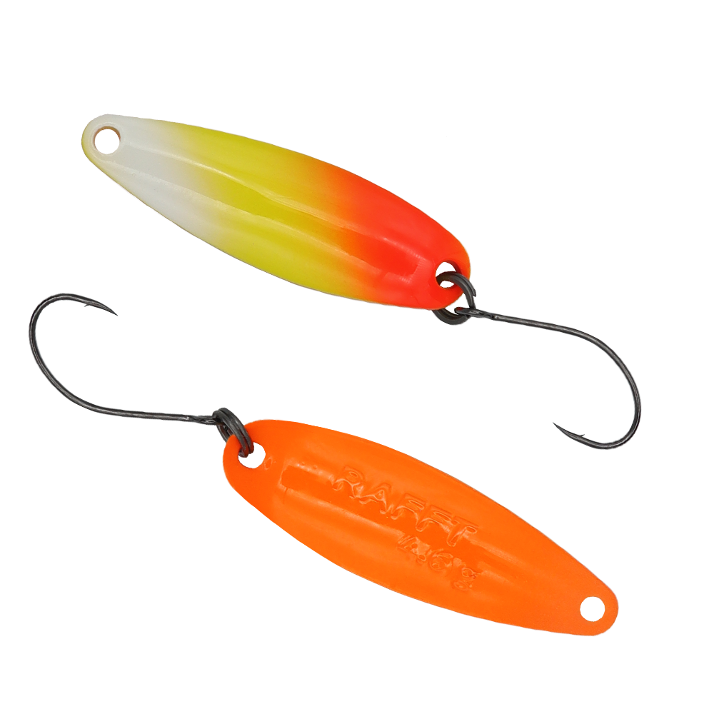 RAFFT 4.6 g ist ein brandneuer Spoon von FANGENSWERT, RAFFT ist der schwerste Spoon in der Serie und somit für weite Würfe und Angeln im Mittelwasser sowie grundnah konzipiert. Durch seinen frequenten Lauf lockt RAFFT die Forellen an und provoziert sie zum Biss. Sehr oft kommen die Attacken auch beim Absinken, denn in dieser Phase hat RAFFT 4.6 g ebenso ein schönes einzigartiges Spiel, das selbst die vorsichtigsten Salmoniden nicht kalt lässt.
