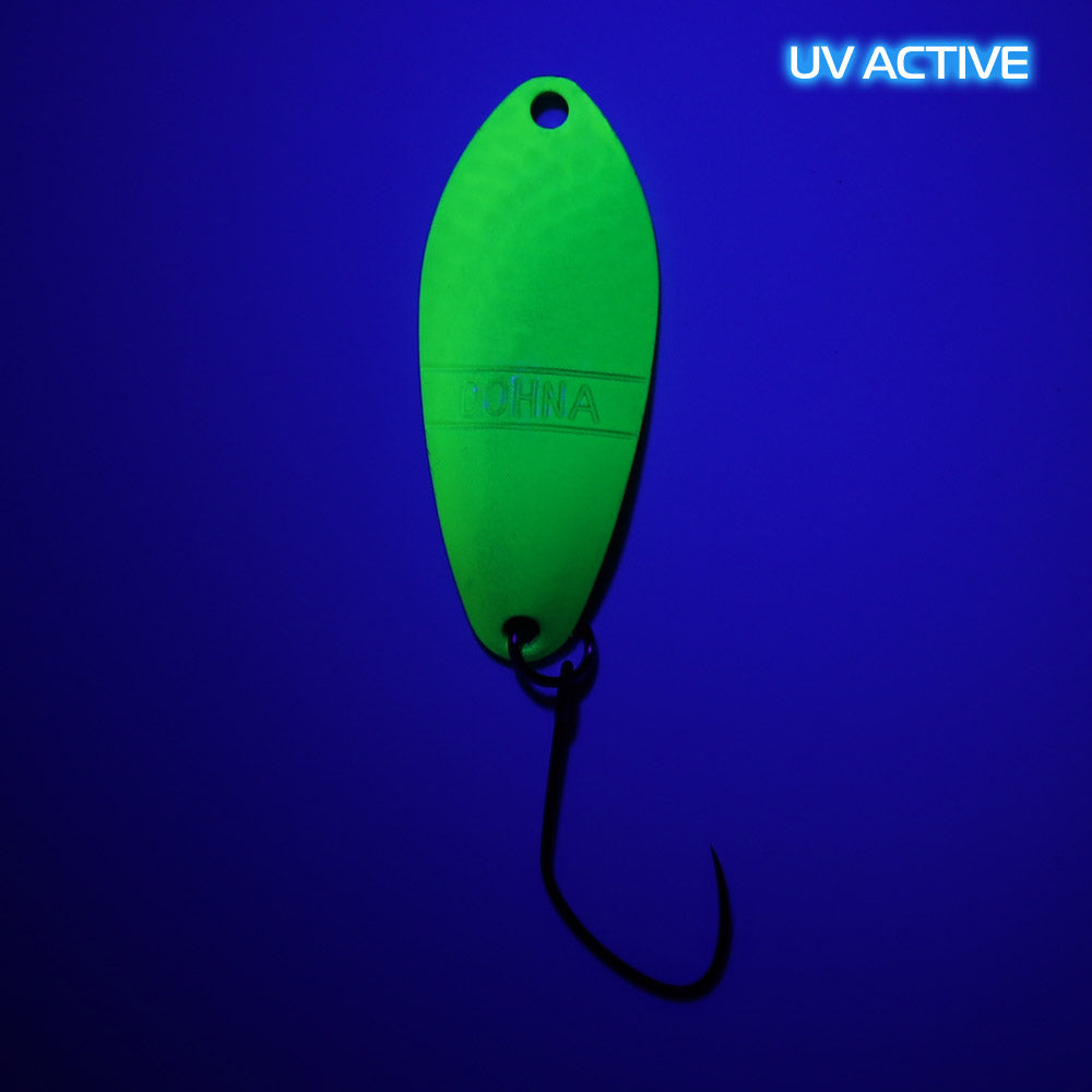 Ob Fließ- oder Stillgewässer, durch seine verschiedenen Gewichtsklassen von 0,8g – 3,0g und die hohe Farbauswahl ist er jeder Situation gewachsen. Ein weiterer Vorteil ist seine asymmetrische Form. Das Spoonblatt des Antem Dohna ist vorne breiter als hinten. Durch diese Form wird der Wasserwiderstand erhöht, was den Köder lebhafter spielen lässt. Die spezielle Spoonoberfläche erzeugt Blinkreize, die den Fisch zum Anbiss verleiten.