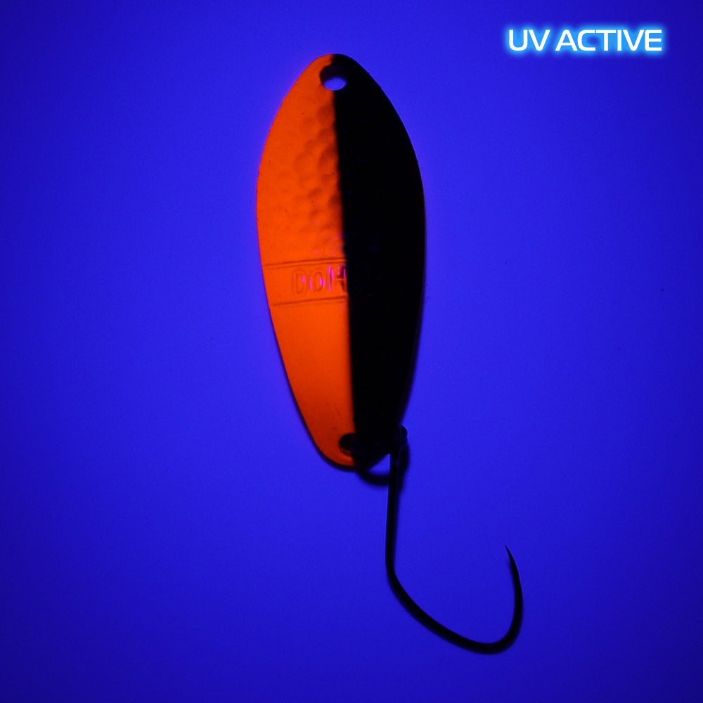 Ob Fließ- oder Stillgewässer, durch seine verschiedenen Gewichtsklassen von 0,8g – 3,0g und die hohe Farbauswahl ist er jeder Situation gewachsen. Ein weiterer Vorteil ist seine asymmetrische Form. Das Spoonblatt des Antem Dohna ist vorne breiter als hinten. Durch diese Form wird der Wasserwiderstand erhöht, was den Köder lebhafter spielen lässt. Die spezielle Spoonoberfläche erzeugt Blinkreize, die den Fisch zum Anbiss verleiten.