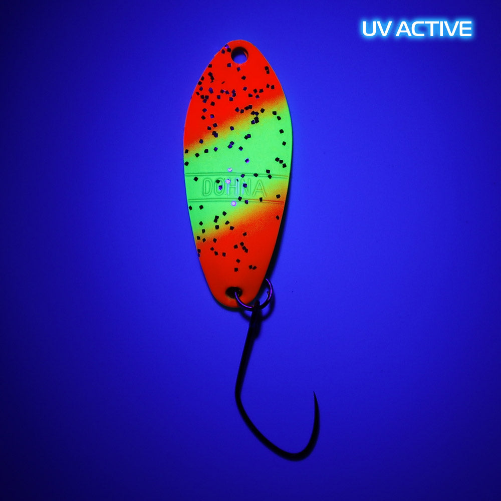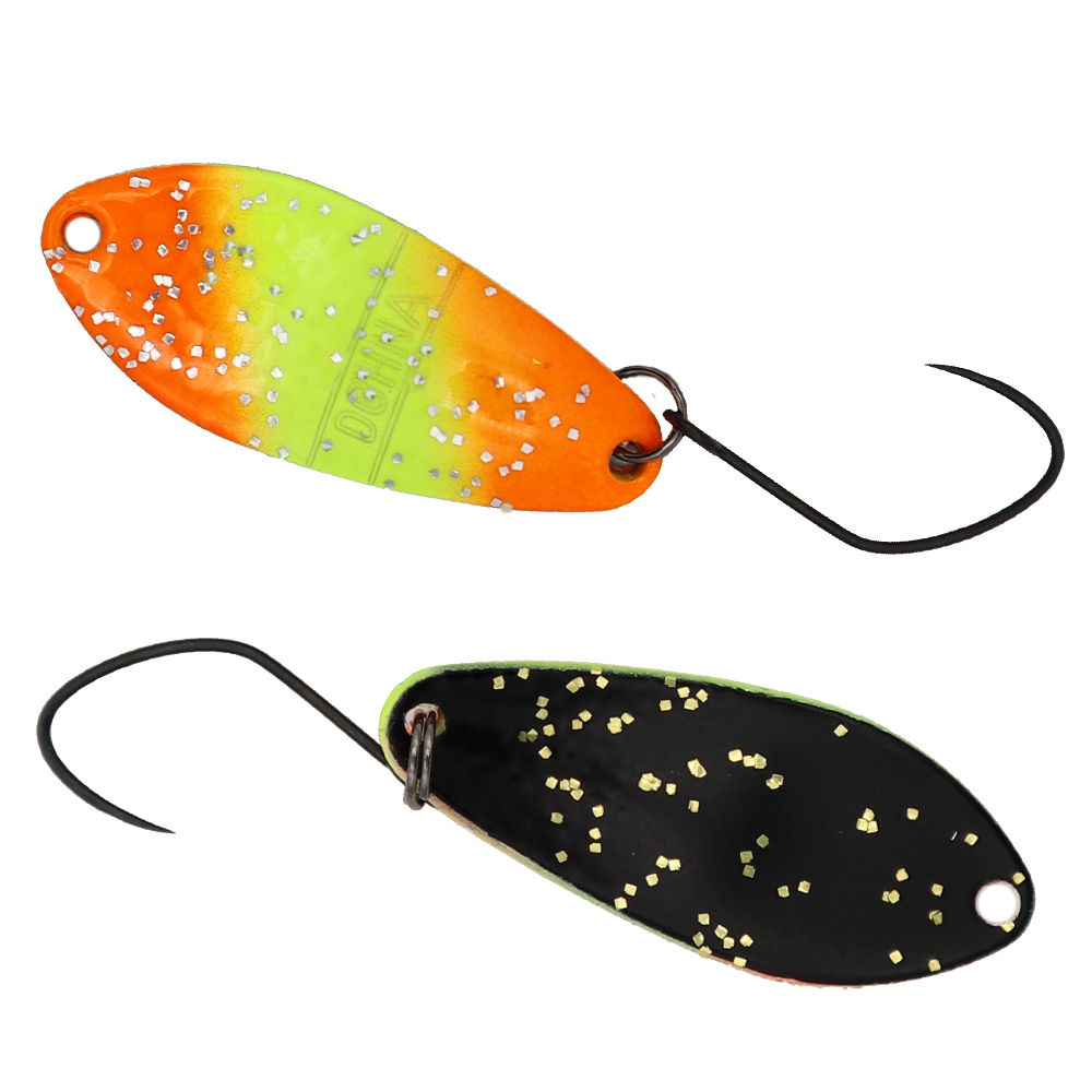 Ob Fließ- oder Stillgewässer, durch seine verschiedenen Gewichtsklassen von 0,8g – 3,0g und die hohe Farbauswahl ist er jeder Situation gewachsen. Ein weiterer Vorteil ist seine asymmetrische Form. Das Spoonblatt des Antem Dohna ist vorne breiter als hinten. Durch diese Form wird der Wasserwiderstand erhöht, was den Köder lebhafter spielen lässt. Die spezielle Spoonoberfläche erzeugt Blinkreize, die den Fisch zum Anbiss verleiten.