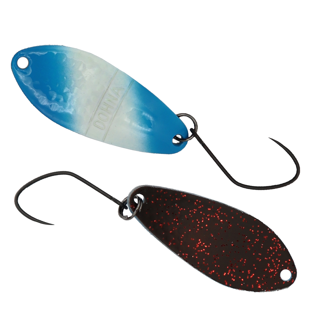Ob Fließ- oder Stillgewässer, durch seine verschiedenen Gewichtsklassen von 0,8g – 3,0g und die hohe Farbauswahl ist er jeder Situation gewachsen. Ein weiterer Vorteil ist seine asymmetrische Form. Das Spoonblatt des Antem Dohna ist vorne breiter als hinten. Durch diese Form wird der Wasserwiderstand erhöht, was den Köder lebhafter spielen lässt. Die spezielle Spoonoberfläche erzeugt Blinkreize, die den Fisch zum Anbiss verleiten.