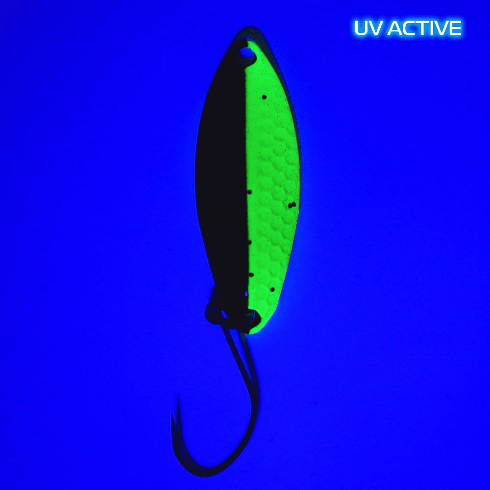 Die eine Hälfte des Spoons hat dabei mehrere sechseckige Schnitte, die bei der Führung für einen einmaligen flimmernden Effekt sorgen.