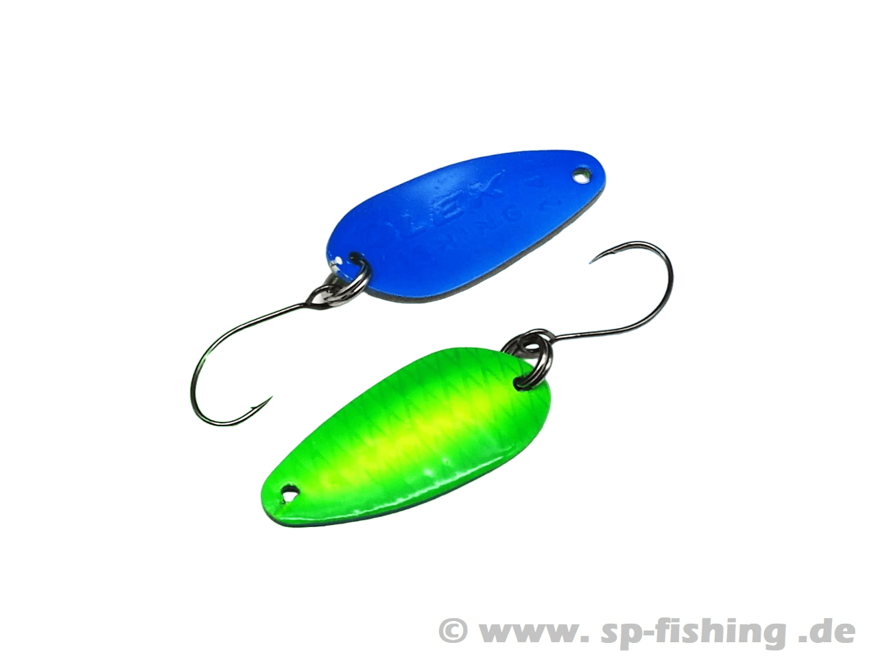 Die UV Spoon Blinker sorgen mit ihrer fluoreszierenden Oberfläche besonders bei bedecktem Wetter und trüben Wasser für eine bessere Sichtbarkeit bei den Forellen.