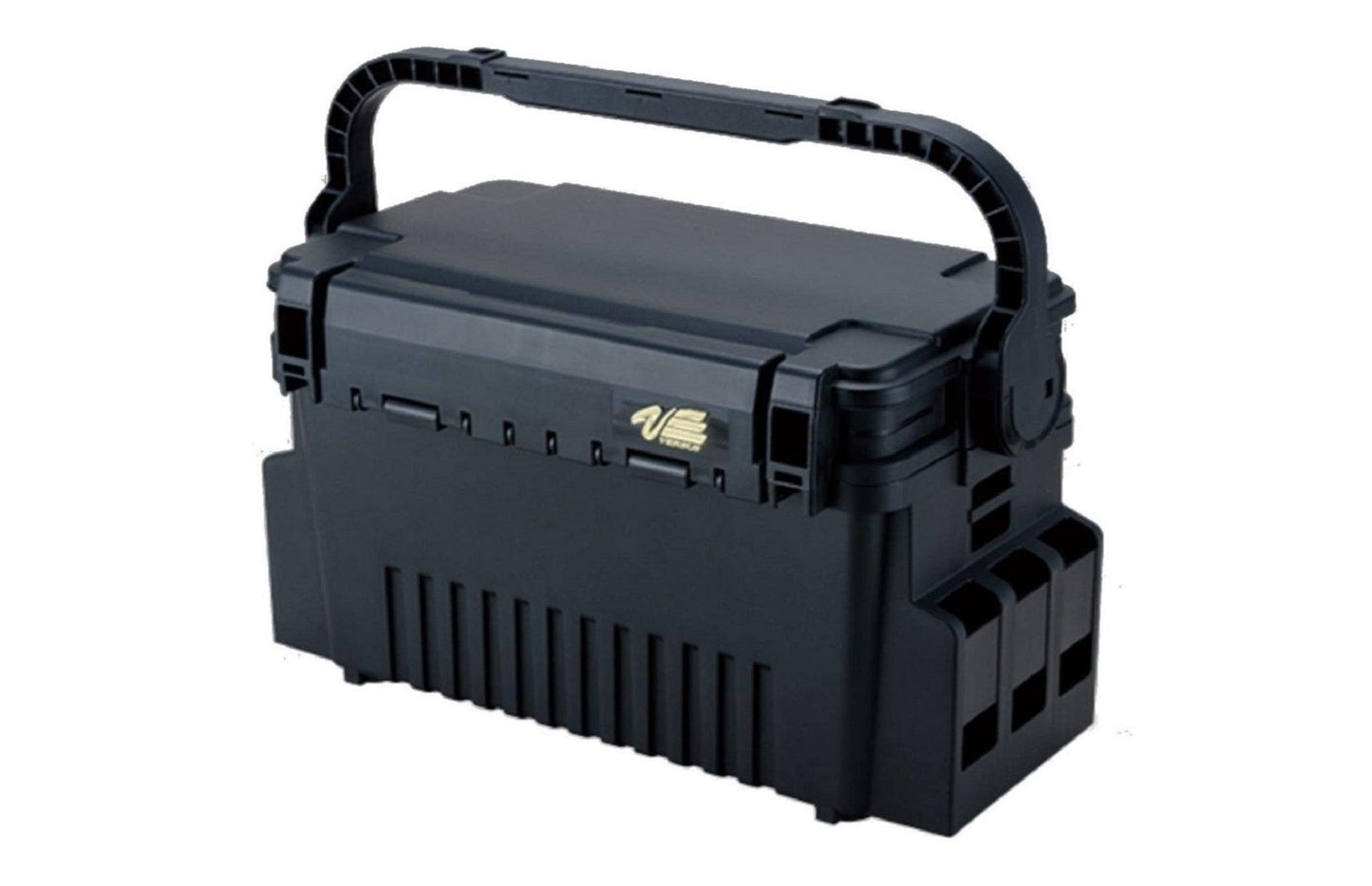 Der Deckel dieser MULTI FUNCTION BOX lassen sich als Tisch nutzen. Im aufgeklappten Zustand dient der Tragegriff als Fuß und stabilisiert den „Tisch“ zuverlässig. Ein äußerst praktisches Feature für alle Ansitzangler.